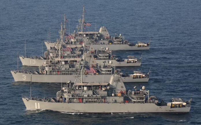 They are being replaced by lighter vessels known as littoral combat ships, which carry modern mine‑hunting equipment such as semi‑autonomous surface and underwater drones as well as remote‑controlled robots that enable crews to distance themselves from the minefield. The navy has three of these in deployment.