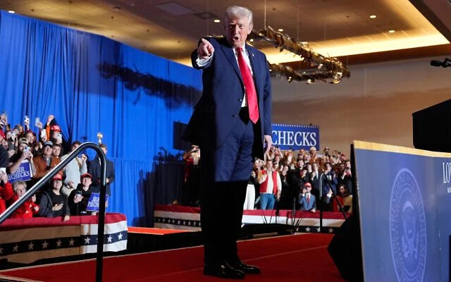 US President Donald Trump gestures after speaking at Mount Airy Casino Resort, on December 9, 2025, in Mount Pocono, Pennsylvania. (AP Photo/Alex Brandon)