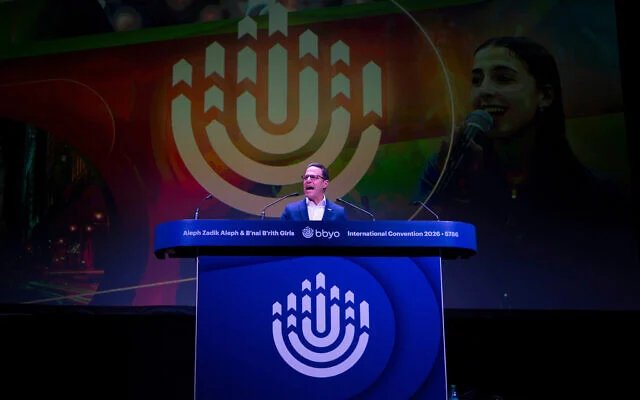Pennsylvania Gov. Josh Shapiro speaks during a B’nai B’rith Youth Organization International Convention in Philadelphia, February 12, 2026. (Joe Lamberti/AP)