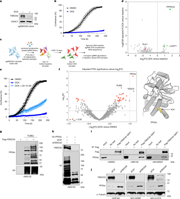 Generation of stable cell lines for expression of Flag–FBXO42 WT or mutants, sgRNAs, DOX-inducible CRISPR–cas9 or Flag–FBXO42 was carried out by the piggybac transposon system. Transfections were performed using Lipofectamine 3000 (Thermo Fisher Scientific) and cells selected for resistance to blasticidin (DOX-inducible expression) or puromycin (constitutive expression).